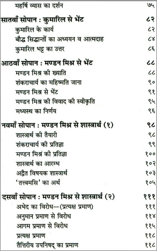 अहिंसात्मक अभियान था । आप इस ग्रन्थ में वर्णित शंकराचार्य के जीवनवृत्त में उनके बाल्यकाल, संन्यासग्रहण, व्यास दर्शन, कुमारिल, मण्डन मिश्र व उभयभारती से शास्त्रार्थ; शंकराचार्य का कामकला शिक्षा हेतु परकाया प्रवेश, उग्रभैरव पराजय, हस्तामलक से सम्पर्क, तोटकाचार्य वृतान्त, भट्ट भास्कर शास्त्रार्थ; जैन व बौद्धमत का खण्डन, उनकी बदरी-केदार यात्रा इत्यादि सभी घटनाओं से शंकर दिग्विजय द्वारा वेदान्त के अद्वैतमत में दिये गये अद्वितीय योगदान से अवगत होंगे।